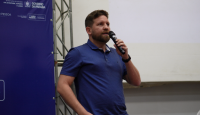 Gerente Administrativo da Lotep, Fillipi Correia, durante sua fala no evento. Foto: Laura Moura.